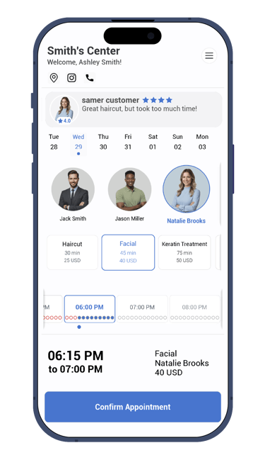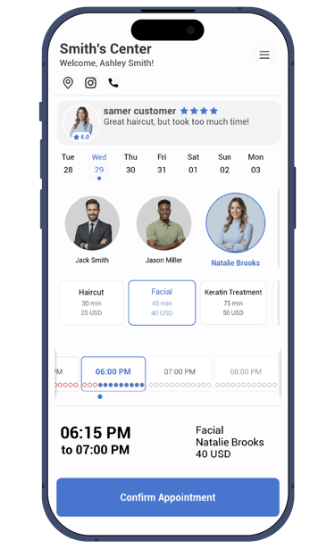 Customers need only 3 clicks, and less than 6 seconds to make an appointment